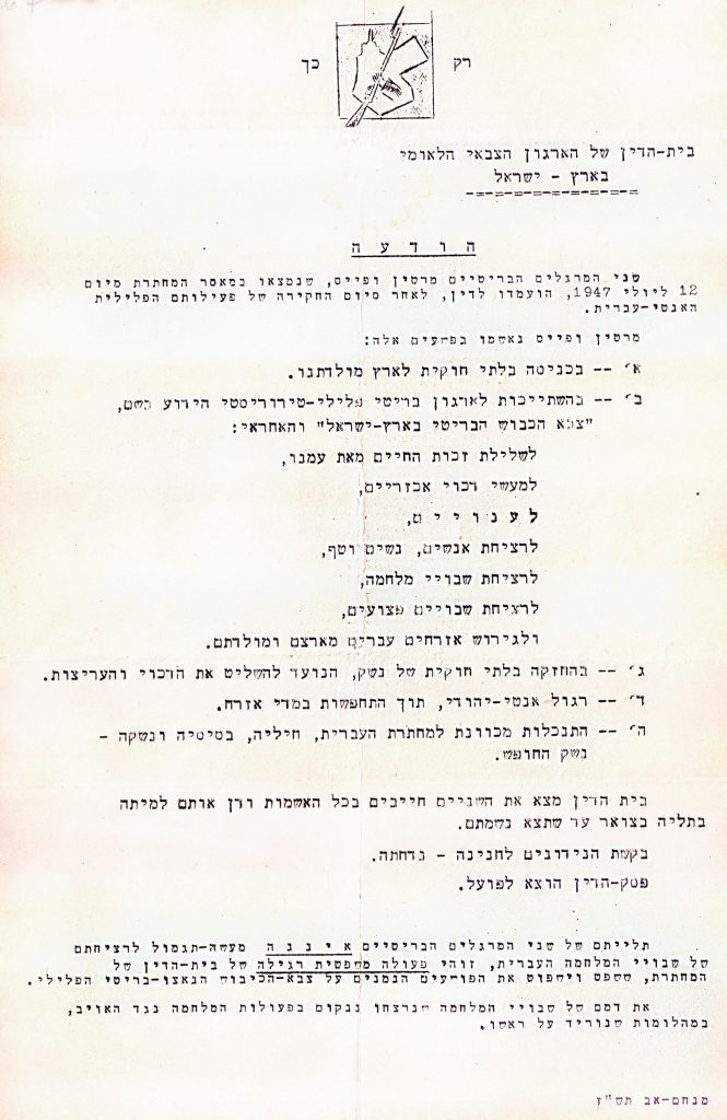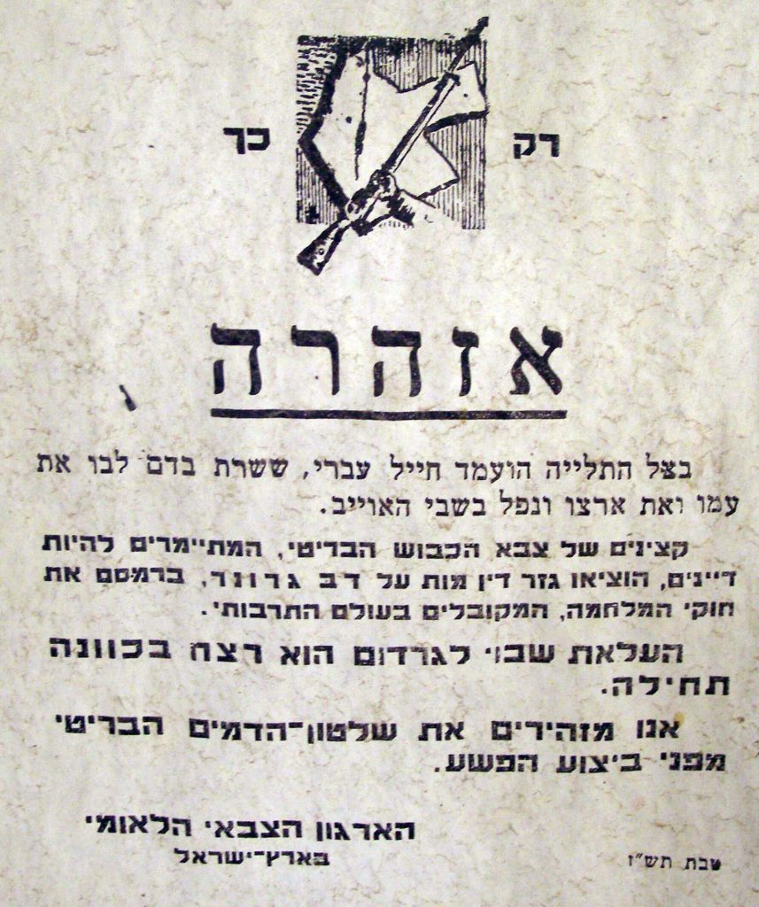 "אל תתלו את חיילינו השבויים. חי האלוהים, כי שבור נשבור את עמודי התלייה שלכם. על גרדום בגרדום נשיב".