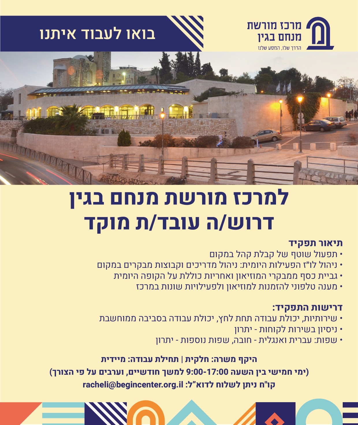 מכרזים ודרושים/ות במרכז מורשת בגין